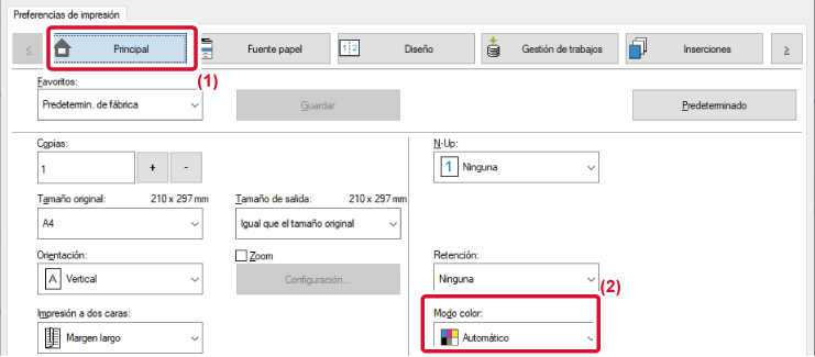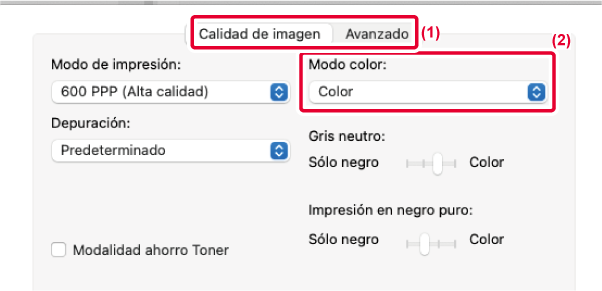 Todas las páginas se imprimen en blanco y negro. Los datos en color, como imágenes o materiales para una presentación, se imprimen utilizando únicamente el tóner negro. Este modo ayuda a conservar el tóner de color cuando no es necesario imprimir en color como, por ejemplo, al corregir o comprobar el diseño de un documento. |