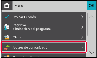Pulse el icono [Menu], [Ajustes de comunicación] y [Ajustes