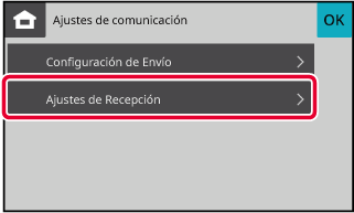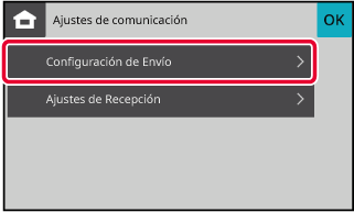 Pulse el icono [Menu], [Ajustes de comunicación] y [Configuración