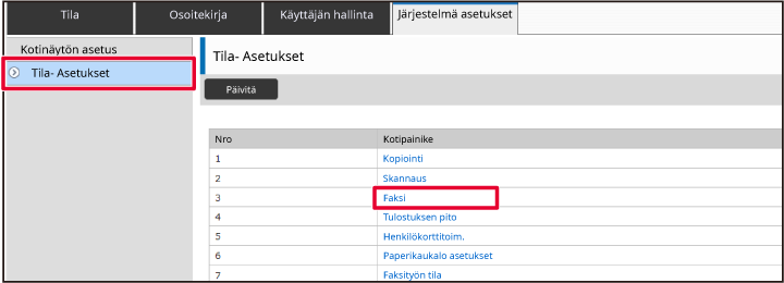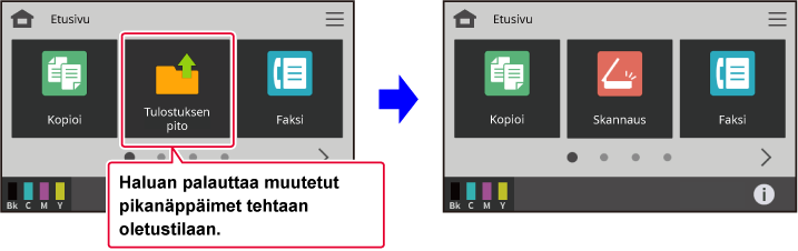 Jotkut asetukset saattavat vaatia sinua syöttämään käyttäjän salasanan sen jälkeen, kun napsautat kohtaa [Kotinäytön asetus]. Jos et suorittanut käyttäjän todennusta, sinun on syötettävä pääkäyttäjän salasana.