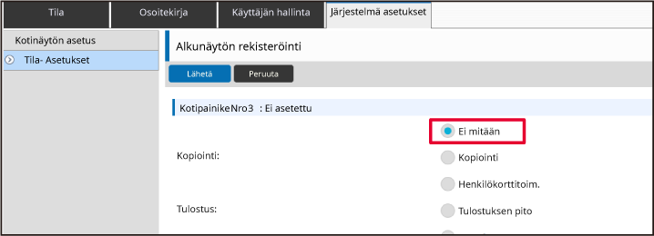 Valitse [Ei mitään] ja napsauta [Lähetä]-painiketta.