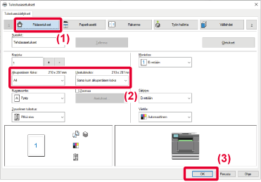 ja "Ulostulokoko" on asetettu asentoon [Sama kuin alkuperäisen koko], "Paperityyppi"