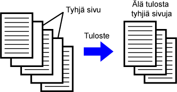 Jos skannattu alkuperäinen sisältää tyhjiä sivuja, tyhjät sivut ohitetaan tulostuksen aikana. Kone tunnistaa tyhjät sivut eikä tulosta niitä. Tämä estää tarpeettoman tulostuksen eikä sinun tarvitset tarkistaa tyhjiä sivuja ennen tulostusta.