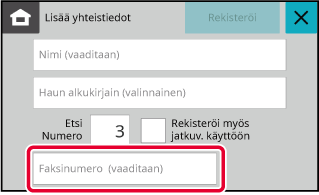 Kosketa [Faksinumero], syötä faksinumero ja kosketa