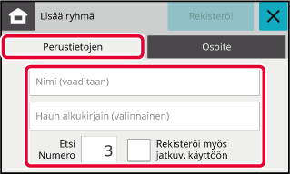 Rekisteröi osoitteet toistamalla vaiheet 3-5. Kun osoitteen rekisteröinti on valmis, kosketa [Rekisteröi]-näppäintä.