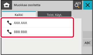 Vai yhdet yhteystiedot tai ryhmätiedot voidaan valita. Jos valitaan kaksi tai useampia, [Muokkaa osoite] -näppäin ei tule näkyviin.Valitse muokattava kohde