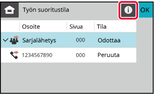 Kosketa [Faksityön tila] -näppäintä ja kosketa sitten