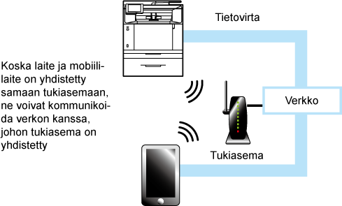 Laite ja mobiililaitteet voivat olla yhteydessä verkon