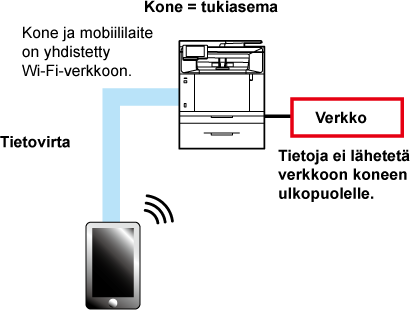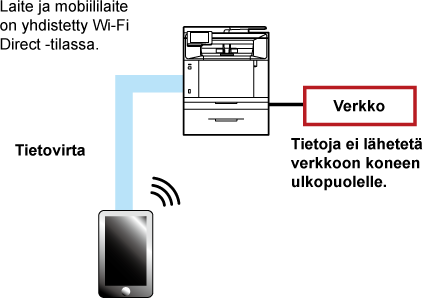 Laite ja mobiililaite viestivät suoraan Wi-Fin kautta.