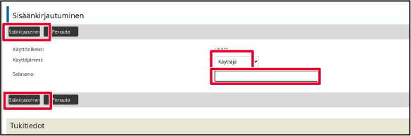 Salasanan syöttäminen