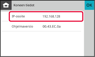 Tarkista IP-osoite laitteen tiedoissa.