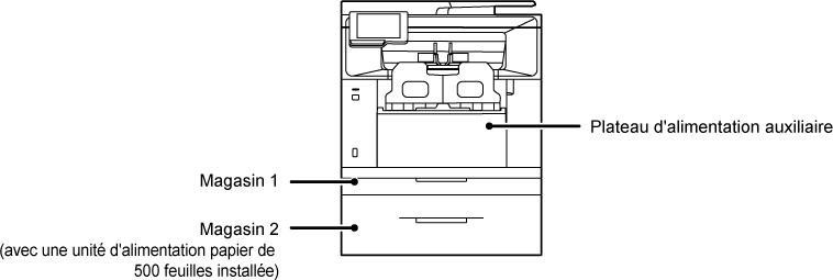| Magasin 1 | Magasin 2*1 | Plateau d'alimentation auxiliaire | |