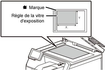 Placez le document original face vers le bas et alignez le coin supérieur gauche du document avec le bord arrière gauche (extrémité du repère