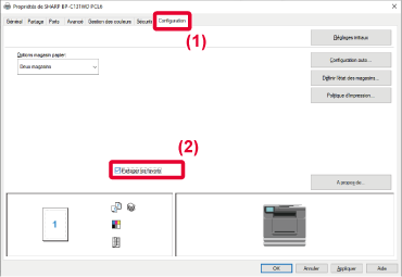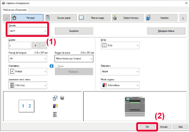Pour une description des réglages, reportez-vous à l'Aide du pilote d'imprimante.Lorsque vous utilisez cette machine comme