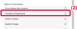 - Sélectionnez [Fonctions d'imprimante] dans « Options d'imprimante »,