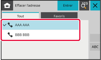 Appuyez sur l'onglet [Adresse] et la touche [Carnet d'adresses].