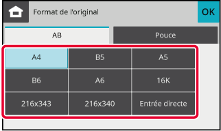 Appuyez sur la touche correspondant au format de l'original de votre choix.