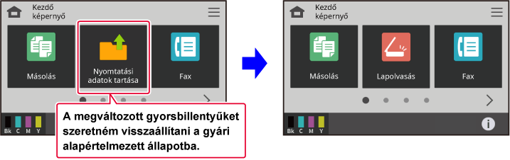 a parancsikonokat a kezdő képernyőn a gyári alapértelmezett állapotba.