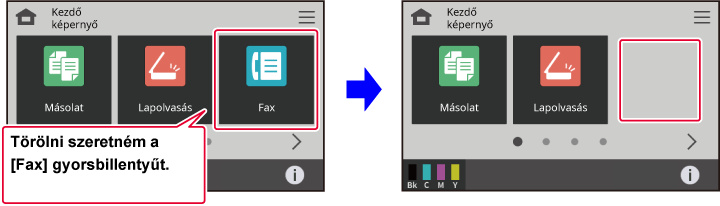 A készülék menti és alkalmazza a beállításokat.Törölheti a felesleges parancsikonokat.