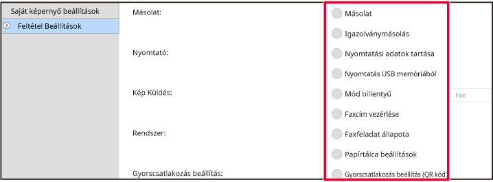 Előfordulhat, hogy egyes beállításoknál meg kell adni a felhasználói jelszót, miután a [Saját képernyő beállítások] elemre kattint. Ha nem végezte el a felhasználói hitelesítést, meg kell adnia a rendszergazda jelszót.