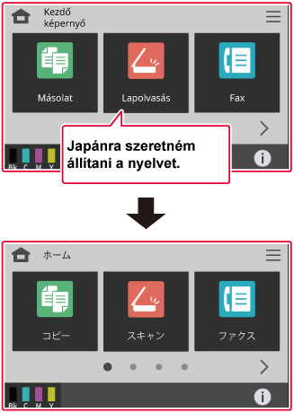 Átmenetileg megváltoztatja a kijelző nyelvét.