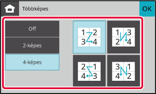 másolásához, a 4 képes beállítást négy eredeti oldal egy lapra másolásához,