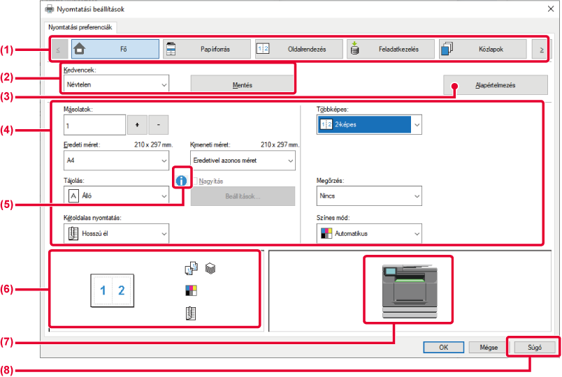 be a nyomtatáshoz használt papír méretét és típusát és a papírtálcát.