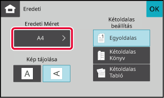 Az alapképernyőn ellenőrizze, hogy a megadott méret jelenik-e meg az [Eredeti] gombon.Az optimális lapolvasás érdekében az eredetitől