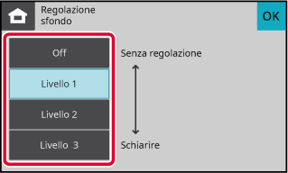 Toccare il tasto [Altri], quindi il tasto [Regolazione sfondo].