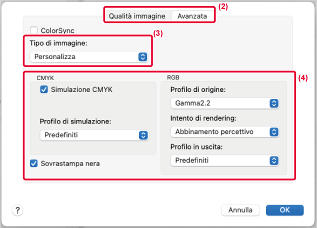 del colore di macOS, selezionare la casella di controllo [ColorSync]