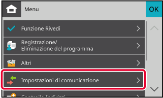 Toccare l'icona [Menu], [Impostazioni Comunicazione]