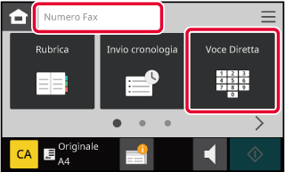 Toccare il tasto [Voce Diretta] o [Numero Fax] per immettere il numero di fax di destinazione.
