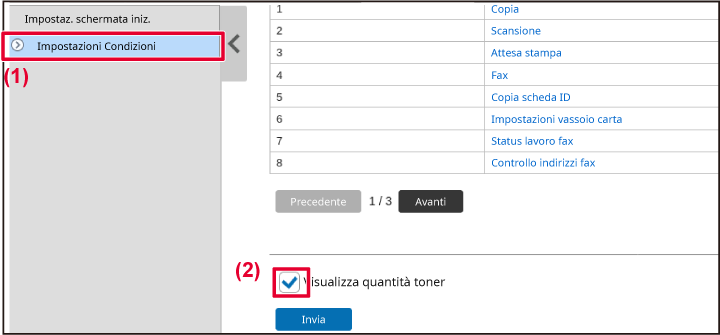 ).Spuntare la casella "Visualizza quantità toner" e fare clic sul pulsante [Invia].