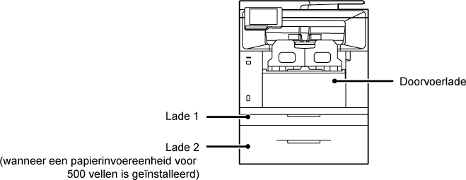 | Lade | Normale toestand | Met briefpapier of voorbedrukt papier geplaatst |