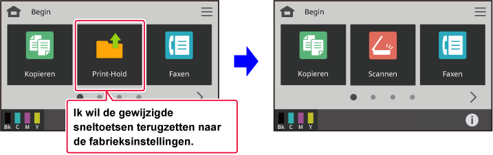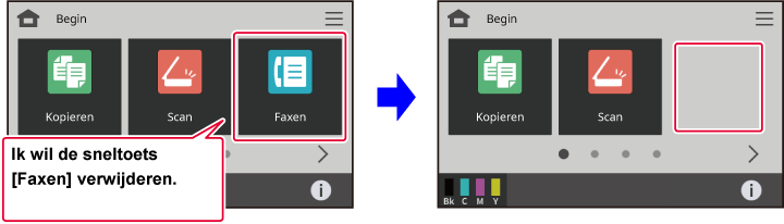 De instellingen worden opgeslagen in het apparaat en worden toegepast.U kunt onnodige sneltoetsen verwijderen.