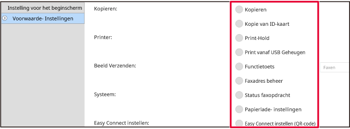 Nadat u op [Instelling voor het beginscherm] heeft geklikt, moet u voor sommige instellingen mogelijk uw wachtwoord invoeren. Wanneer u geen gebruikersverificatie heeft uitgevoerd, moet u het wachtwoord van de beheerder invoeren.