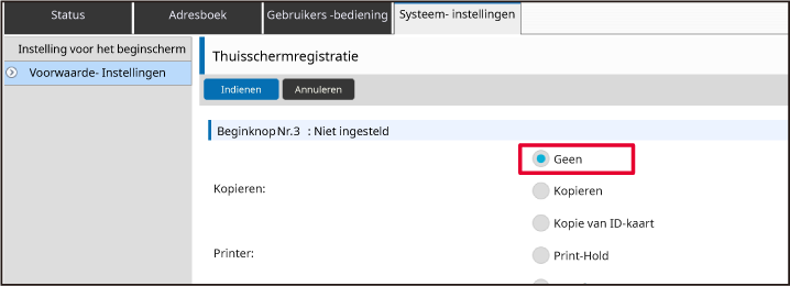 Wanneer u op de knop [Indienen] klikt, wordt het scherm [Thuisschermregistratie] gesloten.