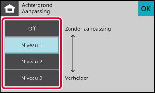 Hoe groter het niveaunummer in [Aanpassing Achtergrond], hoe