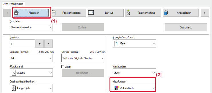 Het apparaat bepaalt automatisch of de pagina een kleuren- of zwart/wit-pagina is en drukt de pagina navenant af. Pagina's met andere kleuren dan zwart en wit worden afgedrukt met Y- (geel), M- (magenta), C- (cyaan) en Bk- (zwart) toner. Pagina's met alleen zwart-wit worden afgedrukt met uitsluitend Bk-toner (zwart). Dit is handig wanneer u een document afdrukt met zowel kleuren- als zwart/wit-pagina's. De afdruksnelheid is echter trager. |