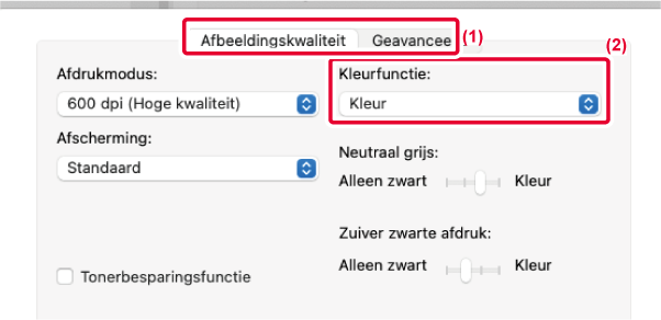 Alle pagina's worden in zwart-wit afgedrukt. Kleurgegevens, zoals afbeeldingen of materiaal voor een presentatie, worden uitsluitend met de zwarte toner afgedrukt. Met deze modus bespaart u op de kleurentoners wanneer kleurenafdrukken niet nodig zijn, zoals bij proeflezen of het controleren van de opmaak van een document. |