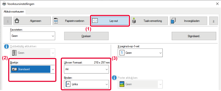 - Selecteer het opgegeven uitvoerformaat en de inbindzijde.