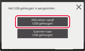 Tik op [Afdrukken vanaf USB-geheugen] als er een scherm wordt weergegeven waarin u een actie moet selecteren.