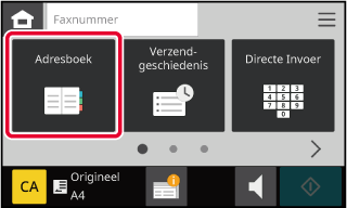 Tik op de toets [Directe Invoer] of de toets [Faxnummer] om het faxnummer van de bestemming in te voeren.