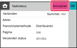 Tik op de toets [Annuleren] wanneer er een scherm verschijnt waarin wordt bevestigd dat de opdracht is geannuleerd.