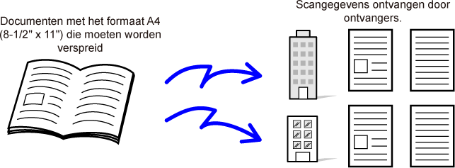 Voer het adres van elk filiaal in. ![]() Tik op de toets [Starten kleur] of [Starten zwart/wit]. Scan en verzend het origineel. |