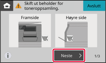 for utskiftning av beholderen for toneroppsamling. Følg instruksjonene.