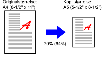 Forminsknings- eller forstørrelsesgraden velges automatisk basert på originalstørrelsen og valgte papirstørrelse.