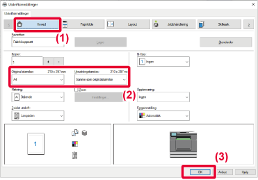 og "Utmatningstørrelse" er satt til [Samme som originalstørrelse], setttes "Papirtype"