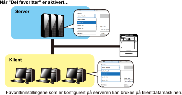For beskrivelse av innstillingene, se Hjelp for skriverdriver.Hvis "Favoritt" er innstilt i skriverdriveren