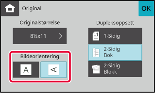 Trykk på [Bildeorientering]-tasten med samme retning som den plasserte originalen.
